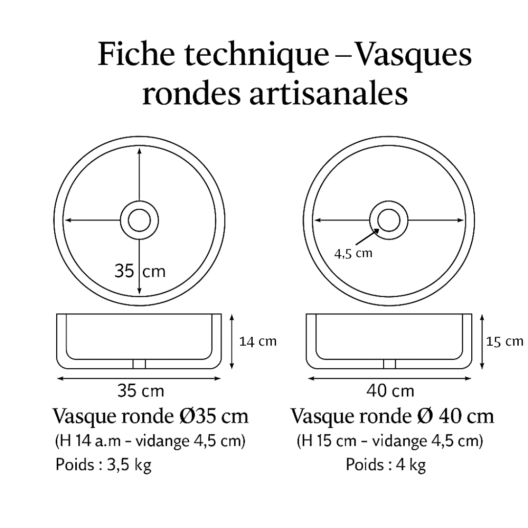 N.B Ces vasques sont réalisées sur demande et prennent un délai de fabrication de 5 à 7 jours